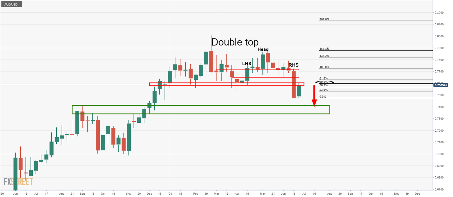 AUD/USD bears in charge on the weekly and daily outlook