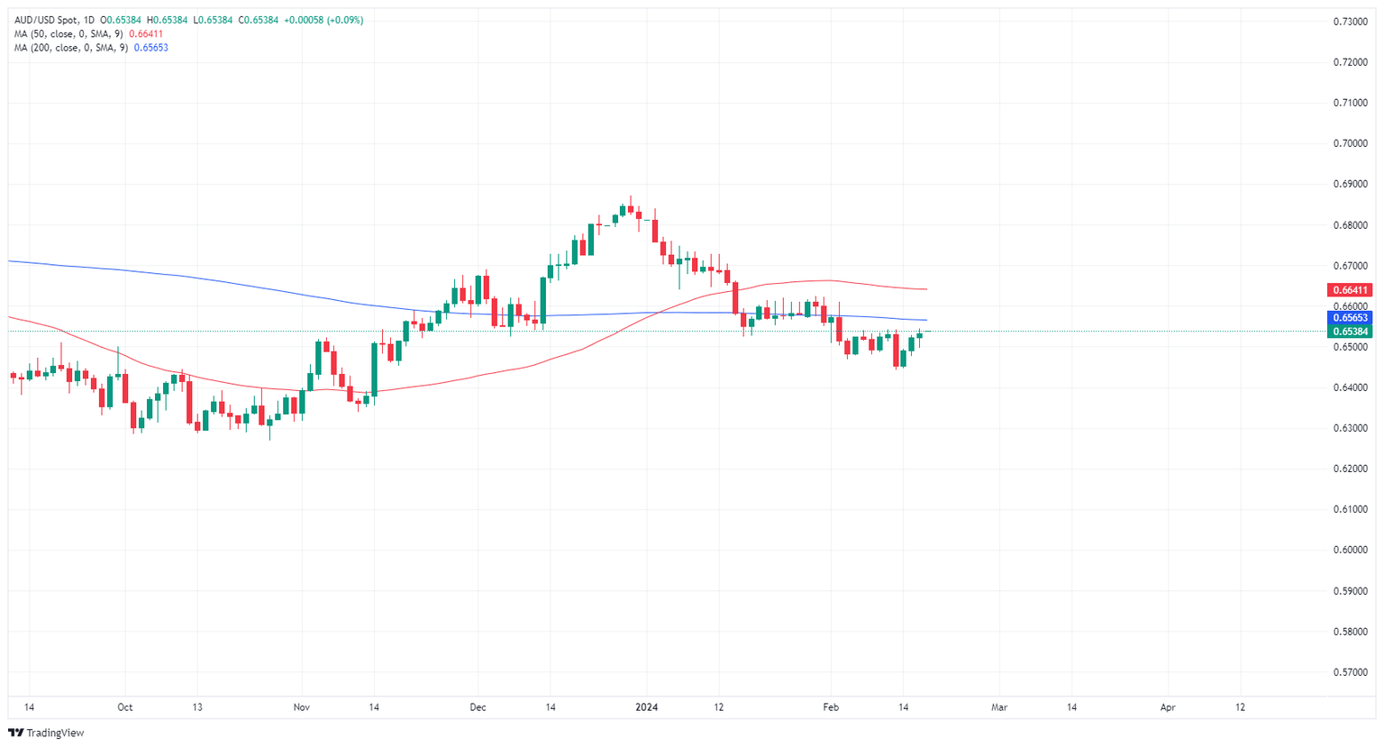 AUD/USD is paddling in circles just below 0.6550 as the pair pulls into the center ahead of Tuesday’s showing from the Reserve Bank of Australia (RBA). Wednesday sees the Federal Reserve’s (Fed) latest Meeting Minutes from the Federal Open Market Committee (FOMC), and early Thursday sees Australia’s latest Purchasing Manager’s Index (PMI) figures for February.