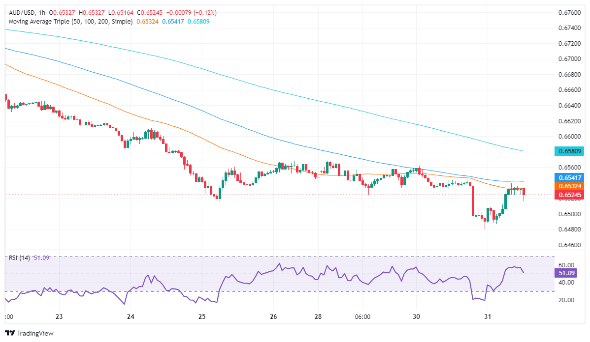 - AUD/USD drops to 0.6516 before recovering, trading within 0.6500-0.6540 after Fed's "hawkish" hold.