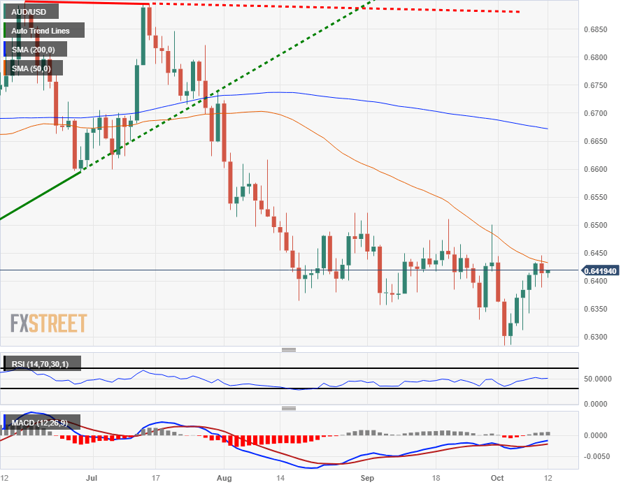Wednesday saw the AUD/USD break it's upside closing streak, with the Aussie closing to the upside against the US Dollar for the previous five consecutive trading sessions, and the AUD/USD is heading into the Thursday market window trading directly into the 50-day Simple Moving Average (SMA), and upside momentum could struggle to develop a foothold.