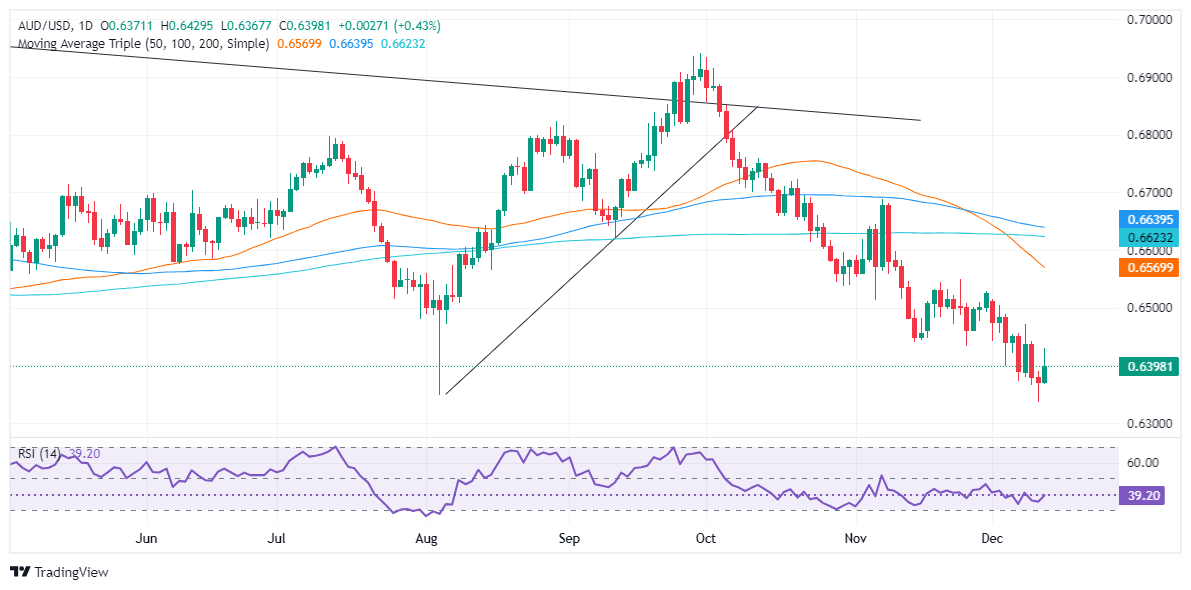 Conversely, if sellers stepped in and drag prices below the December 11 daily close of 0.6336, the pair might drop to 0.6300, before aiming toward October 23, 2023 swing low of 0.6270.