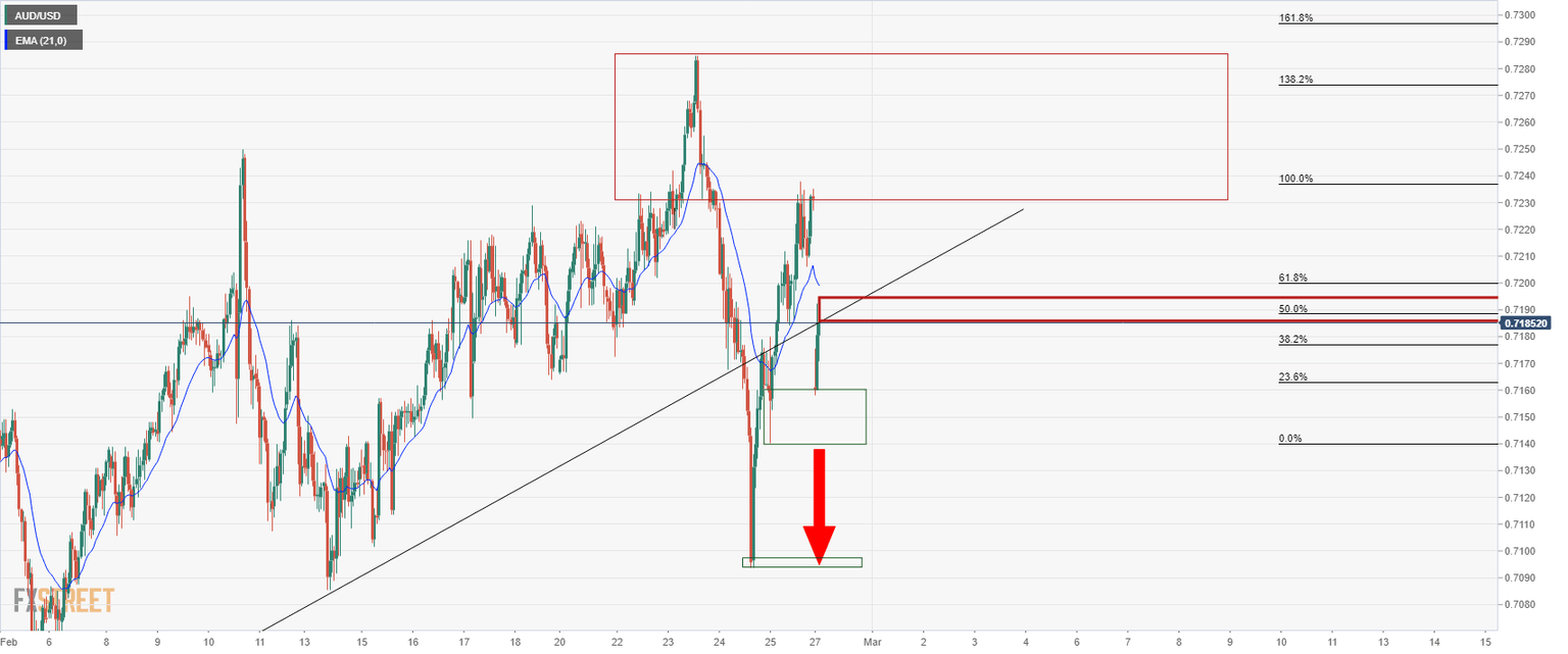 - AUD/USD bears eye between 0.7150 and the 0.7090s.