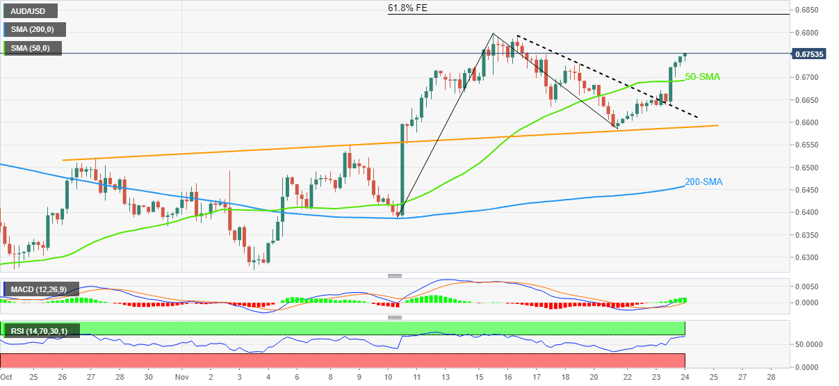 In doing so, the Aussie pair cheers the previous day’s upside break of the 50-SMA and a downward-sloping trend line from November 17, respectively near 0.6690 and 0.6620.