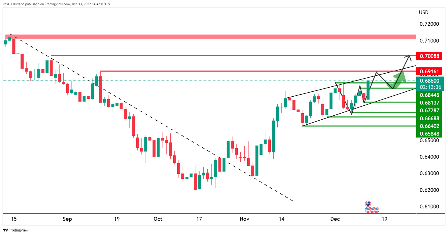 AUD/USD Price Analysis: Bulls are testing channel resistance, meeting the bears