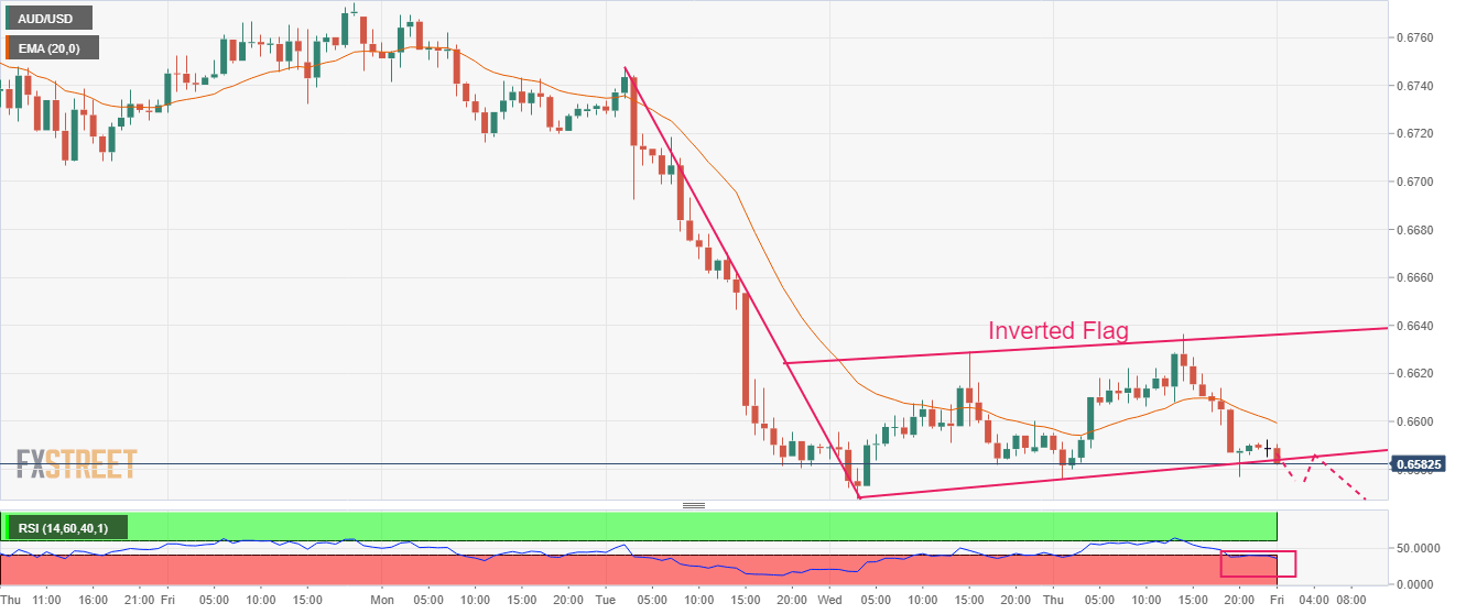 - An Inverted Flag formation favors downside bias for the Aussie asset.