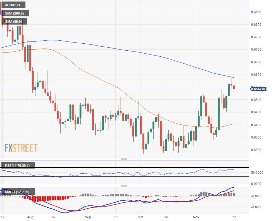 The AUD/USD is wobbling on Wednesday, grinding around the 0.6540 level as market sentiment pushes and pulls the US Dollar (USD), leaving the Aussie (AUD) hung up in the middle of the tug-of-war.