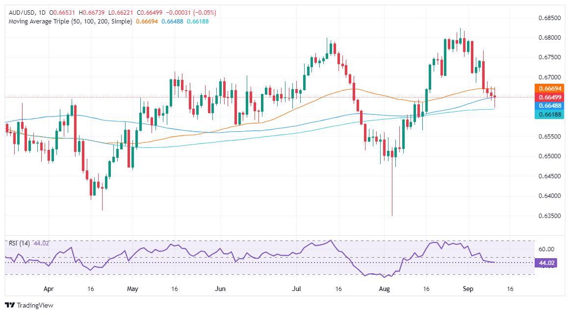 The Australian Dollar dropped during the North American session after the latest US Consumer Price Index (CPI) report, which witnessed an uptick in prices. Market participants that priced in a larger Federal Reserve rate cut trimmed their bets, sponsoring a leg-up in the US Dollar. The AUD/USD trades at 0.6627 after hitting a daily high of 0.6673.