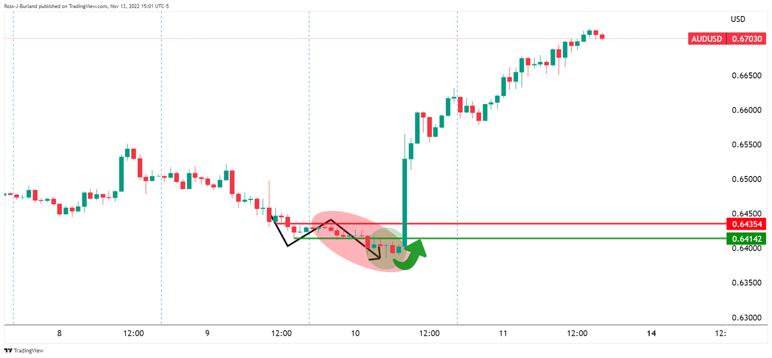 The analysis explained that the bears were still in play on the hourly chart while below the 50% mean reversion level. There were prospects of a downside extension to test 0.6400 the figure as illustrated above, unfolding as follows: