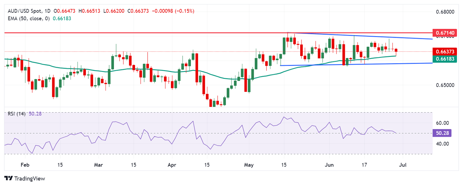 The Australian Dollar trades around 0.6630 on Friday. The daily chart analysis indicates a neutral bias for the AUD/USD pair as it consolidates within a rectangle formation. The 14-day Relative Strength Index (RSI) is at the 50 level, also suggesting neutral momentum. Further movement may signal a clear directional trend.