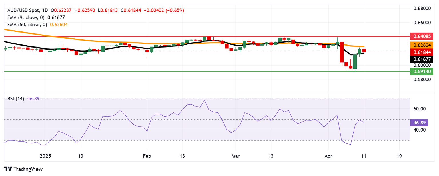To the upside, initial resistance is located at the 50-day EMA, around 0.6260. A sustained move above this level could pave the way for a stronger recovery, potentially pushing the AUD/USD pair toward the four-month high of 0.6408.