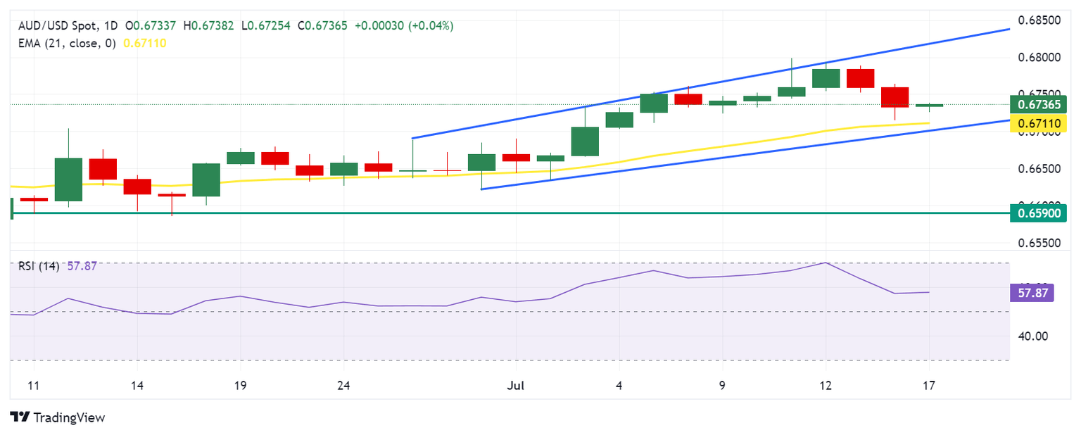 Technical Analysis: Australian Dollar holds ground near 0.6750