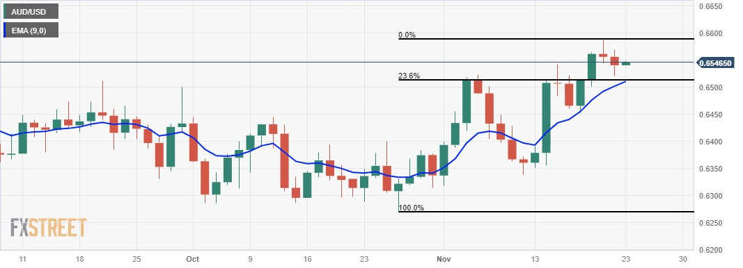 Technical Analysis: Australian Dollar remains below 0.6550, support at the 23.6% Fibonacci retracement