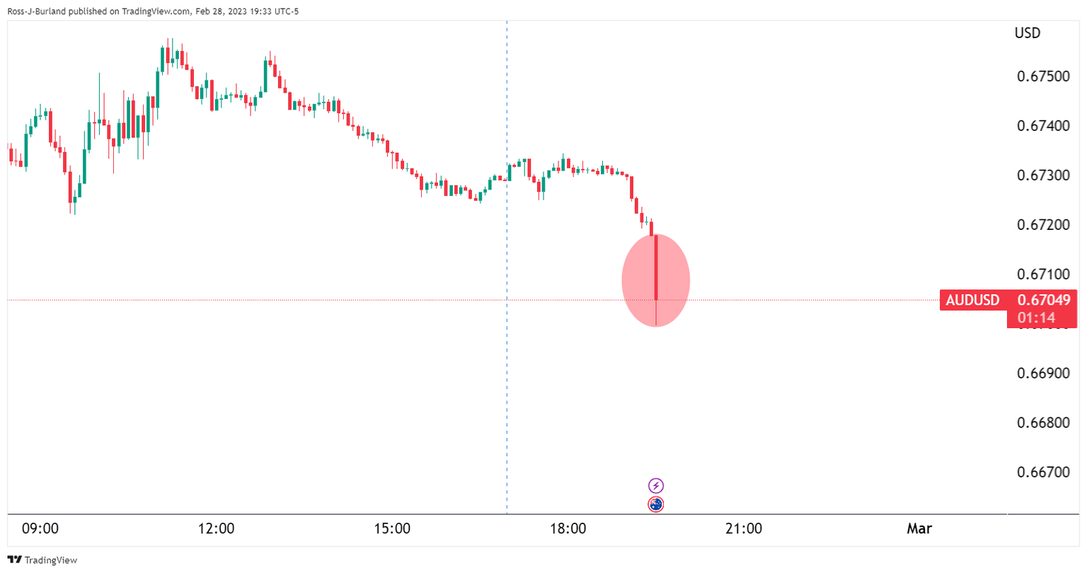 The data would be expected to continue to weigh on the Aussie as aggressive monetary tightening is likely cooling the economy and therefore cast a move dovish sentiment over the Reserve Bank of Australia.