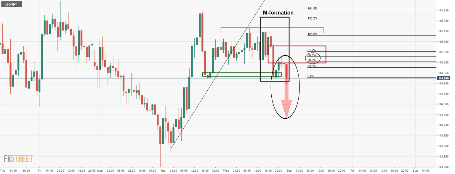 The price action on the hourly time frame is making for a bearish structure, confirming the bias: