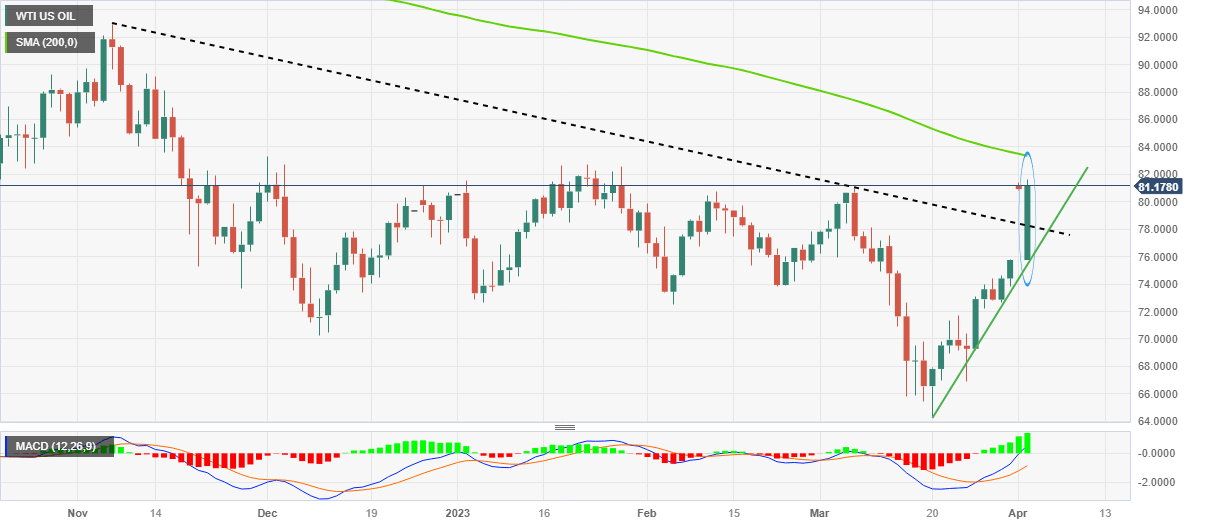 WTI crude oil begins the week with a huge price gap towards the north, jumping to $81.00 during the early hours of Monday’s Asian session. The black gold’s latest rally could be linked to the weekend announcements from the Organization of the Petroleum Exporting Countries (OPEC) and allies led by Russia, known collectively as OPEC+.