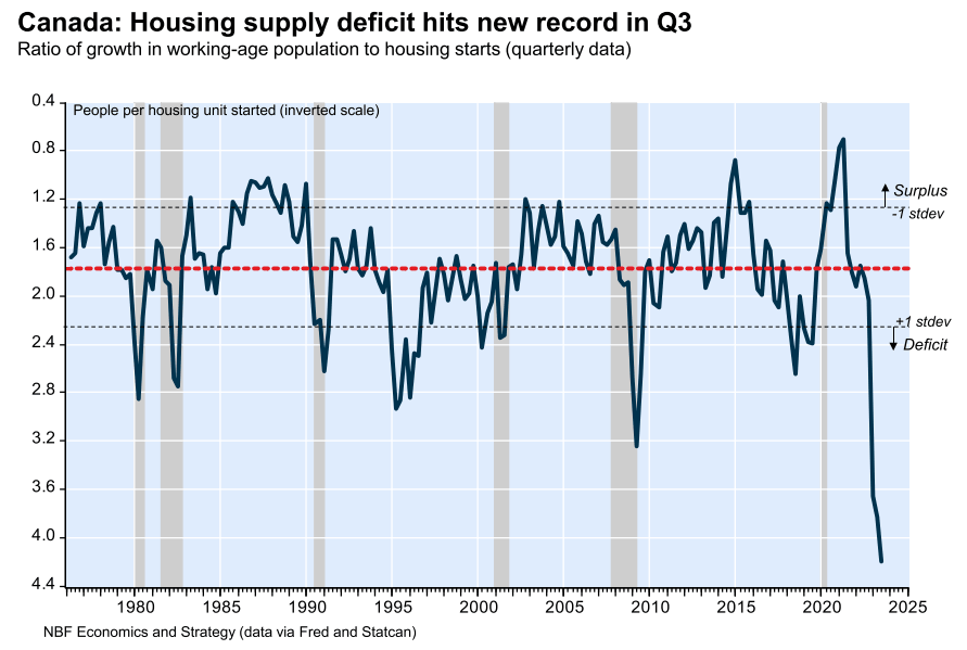 The National Bank of Canada's Stéfane Marion is out with a report on Canada's record housing deficit which set an all-time low in the third quarter.