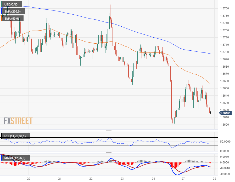 The Canadian Dollar (CAD) is caught in a tight range between 1.3660 and 1.3630 against the US Dollar (USD) for Monday’s trading window, but testing on the low side towards 1.3620 heading into the back half of the trading day.