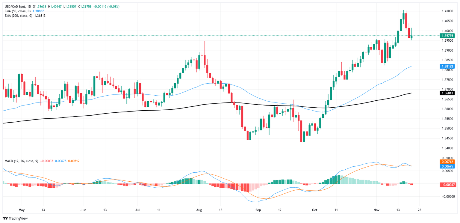 Despite holding onto bullish hope, the Canadian Dollar (CAD) still shed some ground against the Greenback on Wednesday, trimming a scant tenth of a percent and snapping a two-day win streak that saw the Loonie recover around nine-tenths of a percent from multi-year lows. USD/CAD cycled just below the 1.4000 handle during the midweek market session, testing the key psychological level but keeping price action hampered on the low side of the key price level.