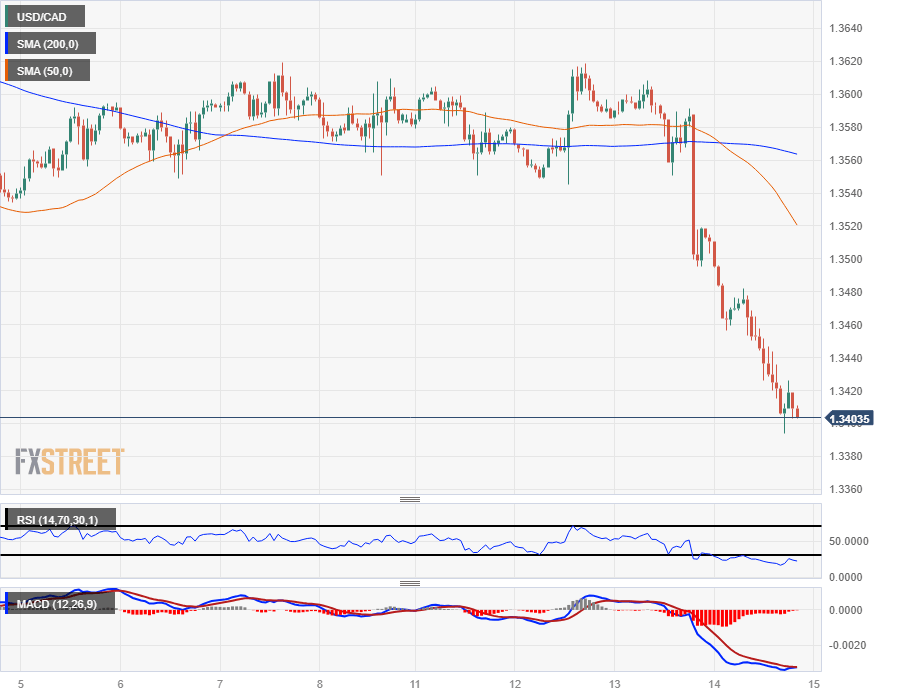 The Canadian Dollar (CAD) is seeing a firm recovery against the US Dollar (USD) extend into a second straight day, sending the USD/CAD further across the 200-day Simple Moving Average (SMA) near 1.3500 as the pair briefly pierces the 1.3400 handle on Thursday.
