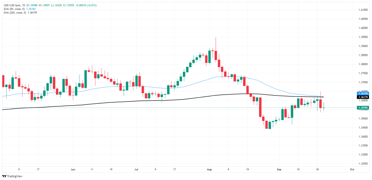 The Canadian Dollar (CAD) continues to plumb familiar territory on Friday, with little meaningful momentum underpinning the currency. USD/CAD is still cycling just south of the 200-day Exponential Moving Average (EMA) near the 1.3600 handle.