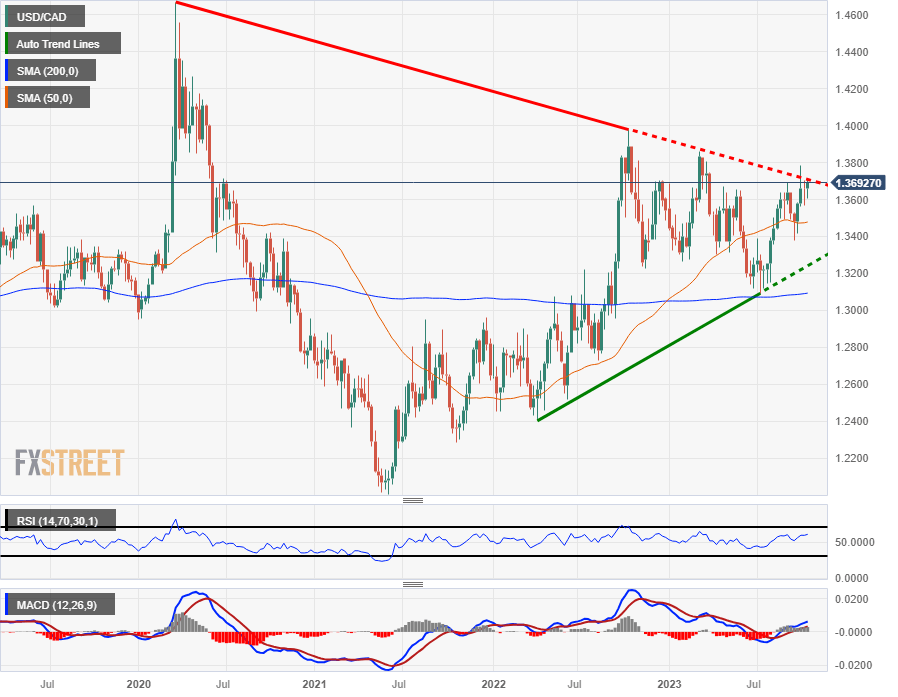 USD/CAD tried to break past the 1.3700 handle on Wednesday, testing into swing high prices that have become familiar territory in recent weeks. The pair has been in a massive range for a whole year, oscillating between highs just short of 1.4000 and lows in the 1.31s. It is once again approaching the range highs.