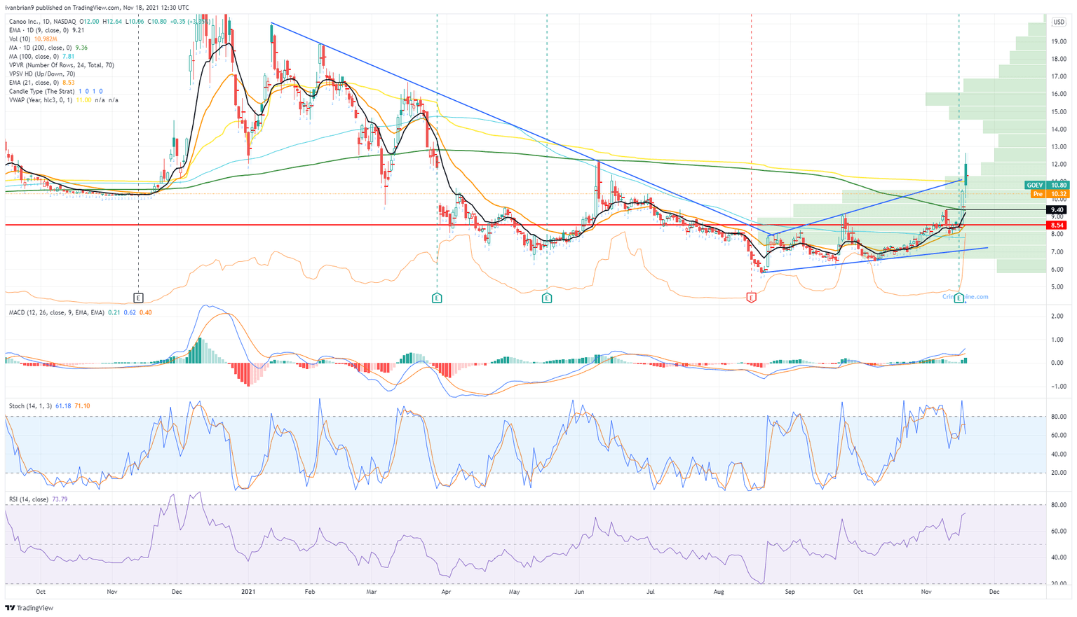 GOEV shares have been here before, the stock surged late last year on some hype before sliding back down so it is still some way off those highs of $24.90. The stock took off earlier this week with a gain of nearly 24% on Tuesday and followed that up with another 3% on Thursday. Canoo said it was bringing forward its expected production schedule from 2023 to before the fourth quarter of next year.