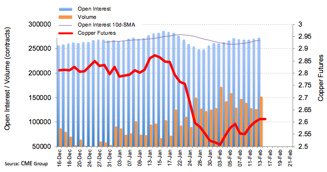 Open interest in Copper futures increased for the third session in a row on Thursday, now by almost 1.9K contracts, as per advanced data from CME Group. Volume followed suit and rose by nearly 24.8K contracts after three consecutive pullbacks.