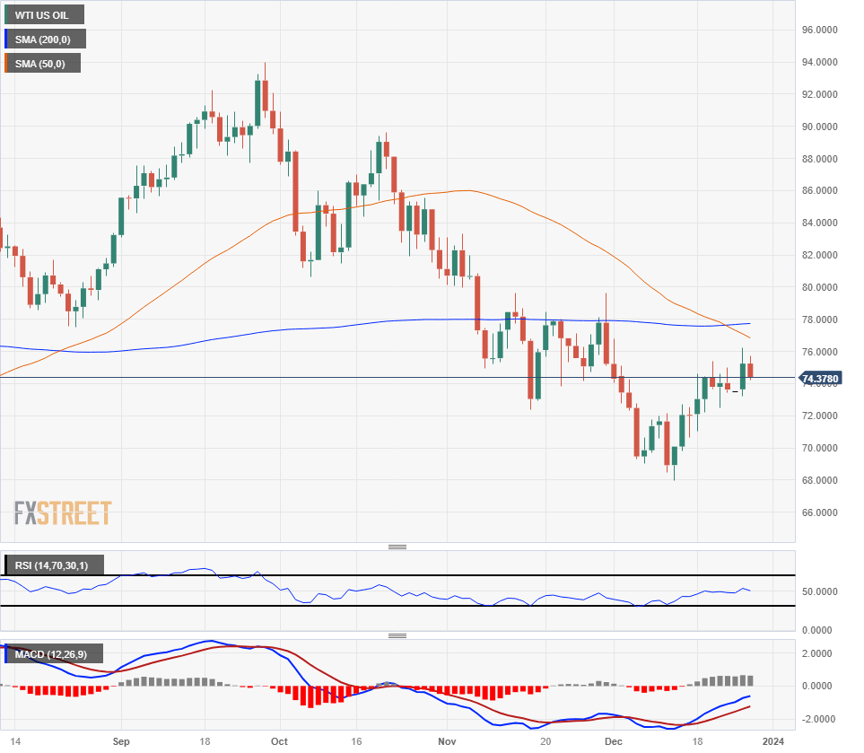 Crude Oil eases despite Red Sea tensions, WTI slips back towards $74.00