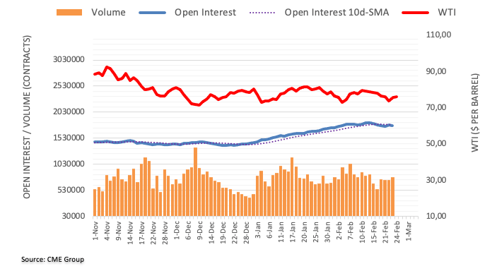 CME Group’s flash data for crude oil futures markets noted traders resumed the downtrend in their open interest positions on Thursday, this time following a drop of around 11.7K contracts. Volume, on the other hand, went up for the second session in a row, now by around 50.3K contracts.