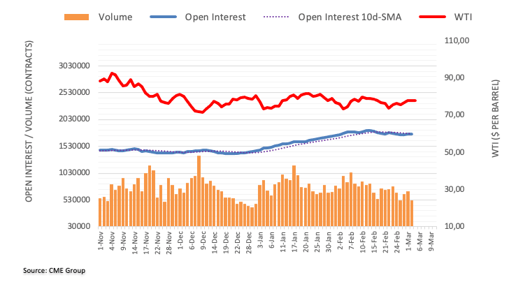 Prices of the WTI kept the bid bias unchanged and advanced modestly on Thursday. The daily uptick was on the back of a small increase in open interest, whereas volume retreated sharply, hinting at the idea that the ongoing rebound could lose some impulse in the very near term. In the meantime, the next target of note emerges at the February high near $80.60 (February 13).