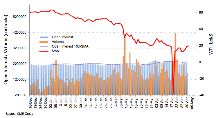 Prices of the barrel of the WTI advanced further on Thursday. The positive price action was on the back of rising open interest and volume, opening the door for the continuation of the rebound in the very near term. That said, the $20.00 mark per barrel emerges as the next key barrier in the short-term.