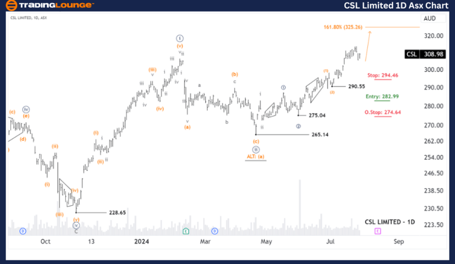 ASX: CSL Elliott Wave technical analysis one-day chart (Semilog Scale) analysis