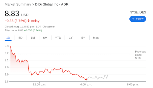 NYSE:DIDI fell once again on Wednesday, a sigh that shareholders are getting all too used to unfortunately. The Chinese ride-hailing stock fell below the $9.00 price threshold for the first time since late-July, as the ongoing investigation by the Chinese government has erased any gains that were made since. Shares of Didi fell by a further 3.71% on Wednesday, and closed the trading session at $8.83. It was another session of tech weakness as the Dow Jones and S&P 500 were once again carried to new all-time highs on the strength of cyclical stocks. Blue-chip and value sectors have been showing strength lately on the back of the impending approval of the new infrastructure bill from President Biden.