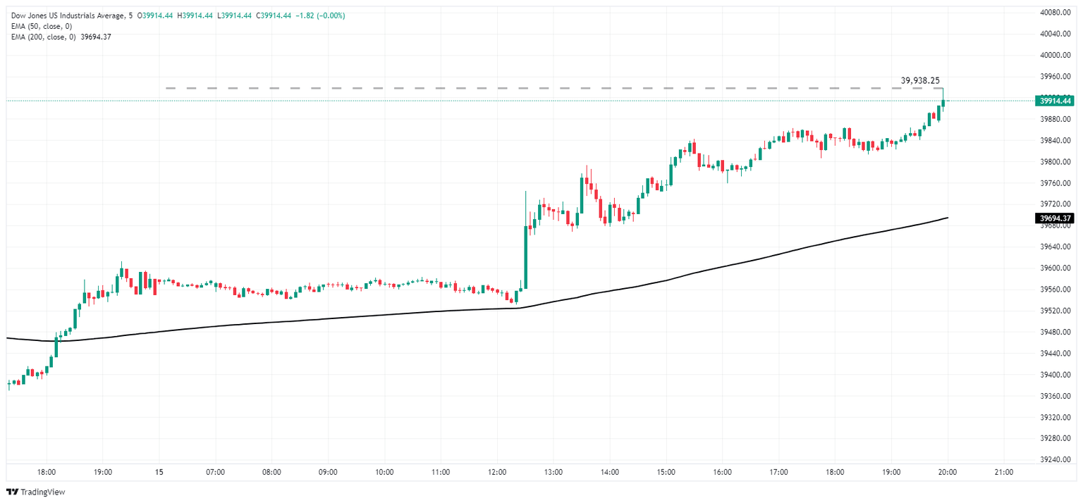 The Dow Jones climbed into a new all-time high of 39,938.25, coming within inches of the 40,000.00 handle. The DJIA is pushing further into a bull run that kicked off after a mild pullback near 37,500.00. The Dow Jones is poised to close another day in the green, and has seen upside momentum in all but one of the last ten consecutive trading days.