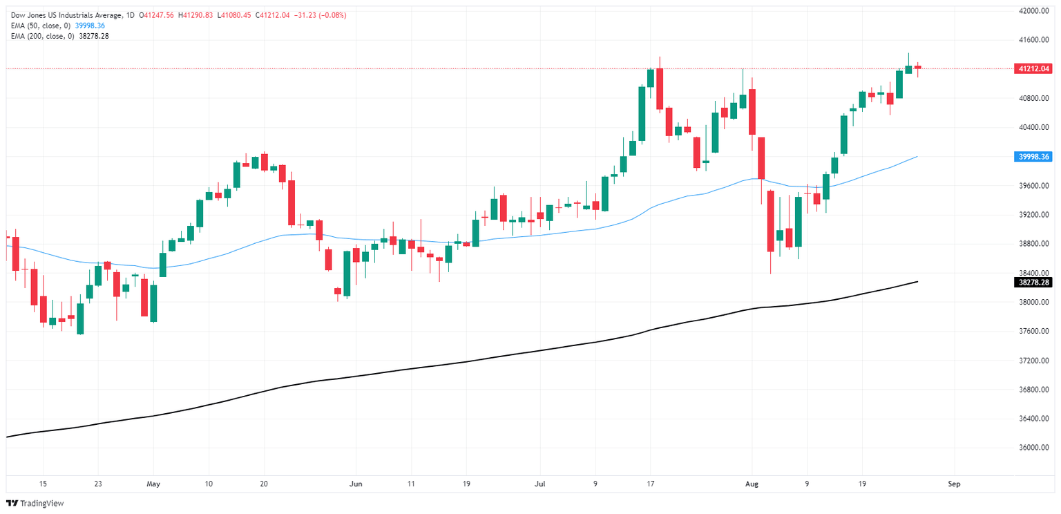 The Dow Jones Industrial Average (DJIA) was softer on Tuesday, testing the lower side of the day’s opening bids after clipping into a fresh record high at the outset of the trading week. Market action on the Dow Jones has pulled into the midrange with market bets of a Federal Reserve (Fed) rate cut in September fully priced in. The long wait to the next Fed rate call will be filled with grappling over whether it will be 25 bps or 50.