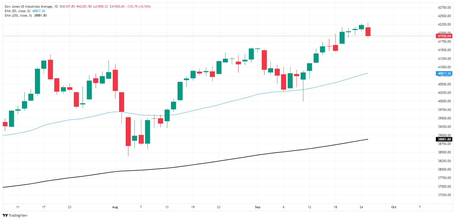 The Dow Jones Industrial Average (DJIA) pulled back on Wednesday, shedding around 300 points and easing back below the 42,000 handle as the heavyweight equity index takes a breather after a period of repeated breaks into record territory.