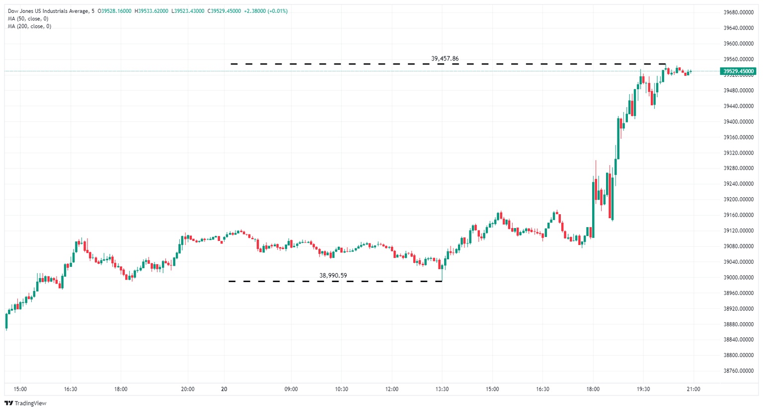 Dow Jones Industrial Average taps all-time highs on Wednesday near 39,550.00 post-Fed