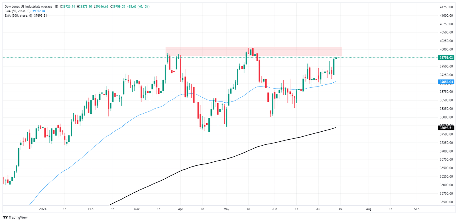Dow Jones found slim gains on Thursday, but momentum remains stilted as the index tests the water of a supply zone priced in near the 40,000.00 major price handle. The Dow Jones has been slowly battling back into reach of all-time high bids sets just north of 40,000.00 back in May, recovering nearly 5% from the post-peak swing low towards 38,000.00.