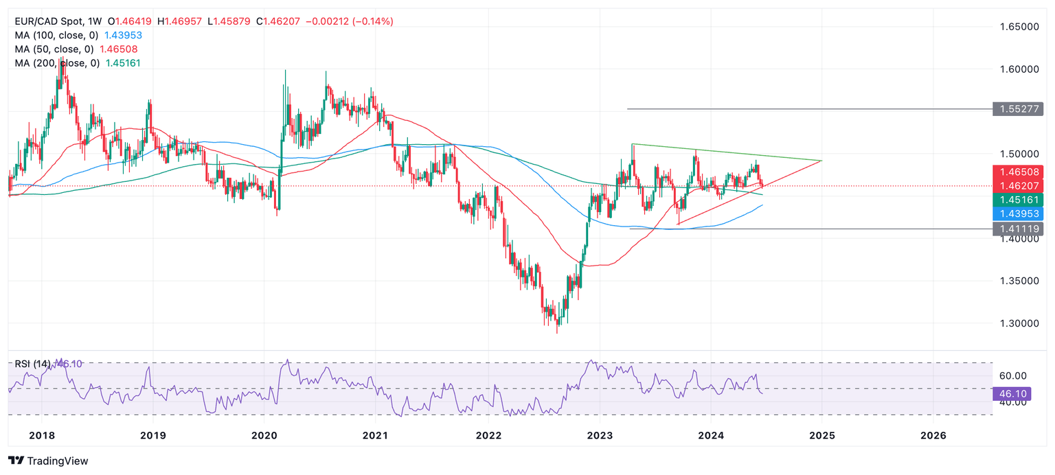 - EUR/CAD is completing a Symmetrical Triangle pattern on the weekly chart.