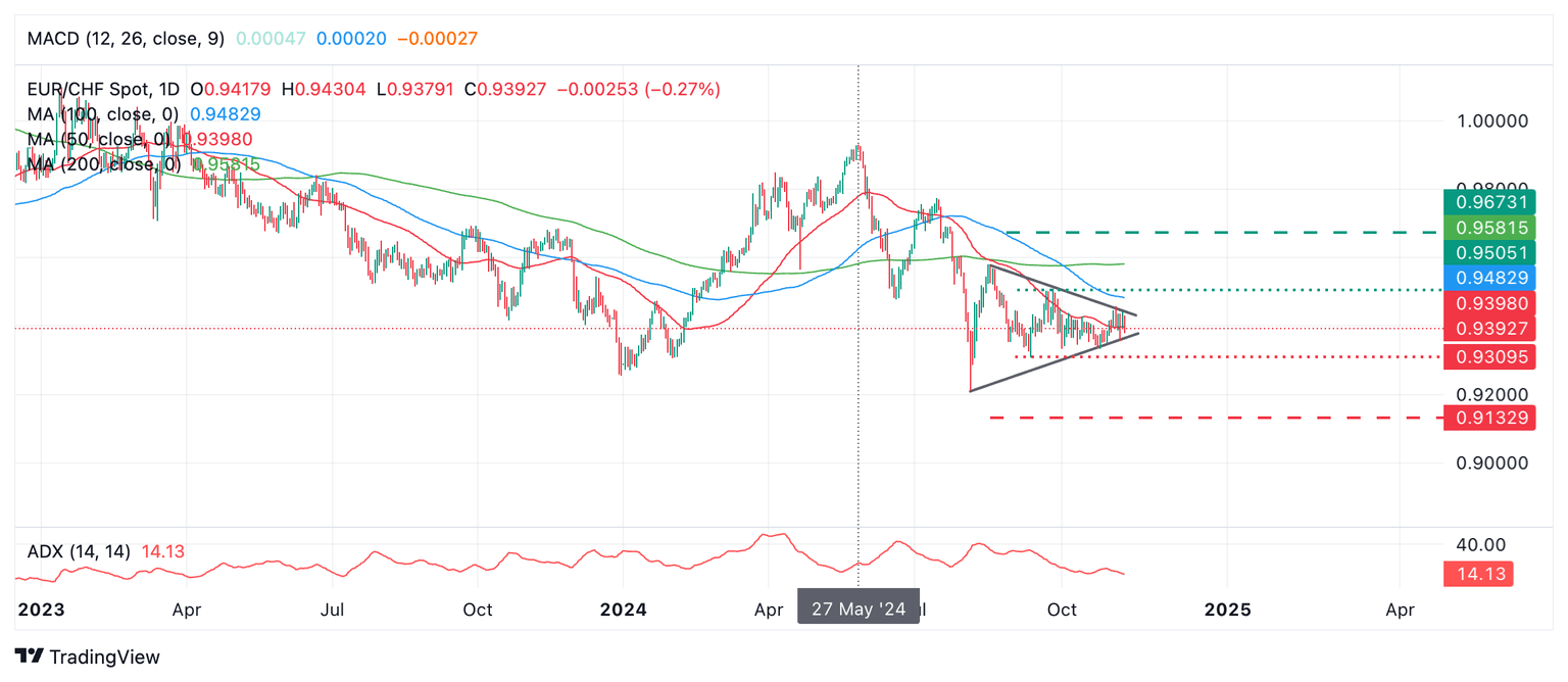 EUR/CHF Price Forecast: Triangle pattern completing, breakout to follow