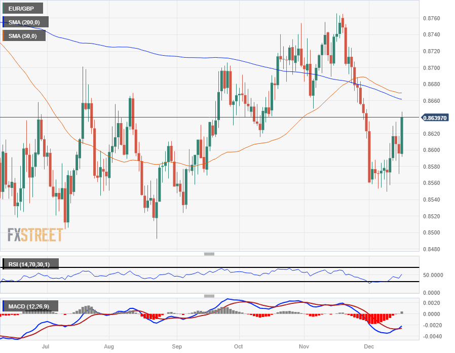 The EUR/GBP is hardening a technical rebound towards the 0.8700 handle after a rough battle over the 0.8600 handle last week. December saw the pair struggling to develop momentum after getting pinned into 0.8560 in November’s 2.3% decline from 0.8765.