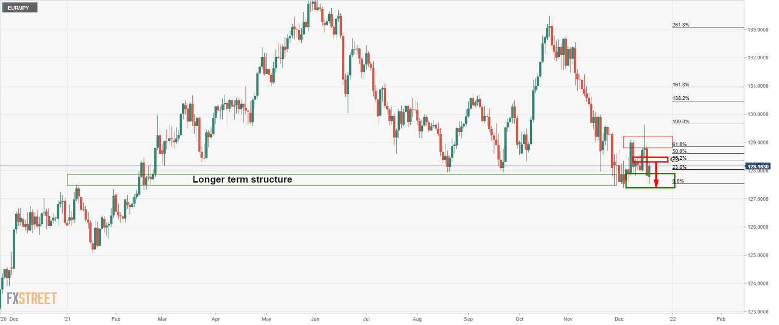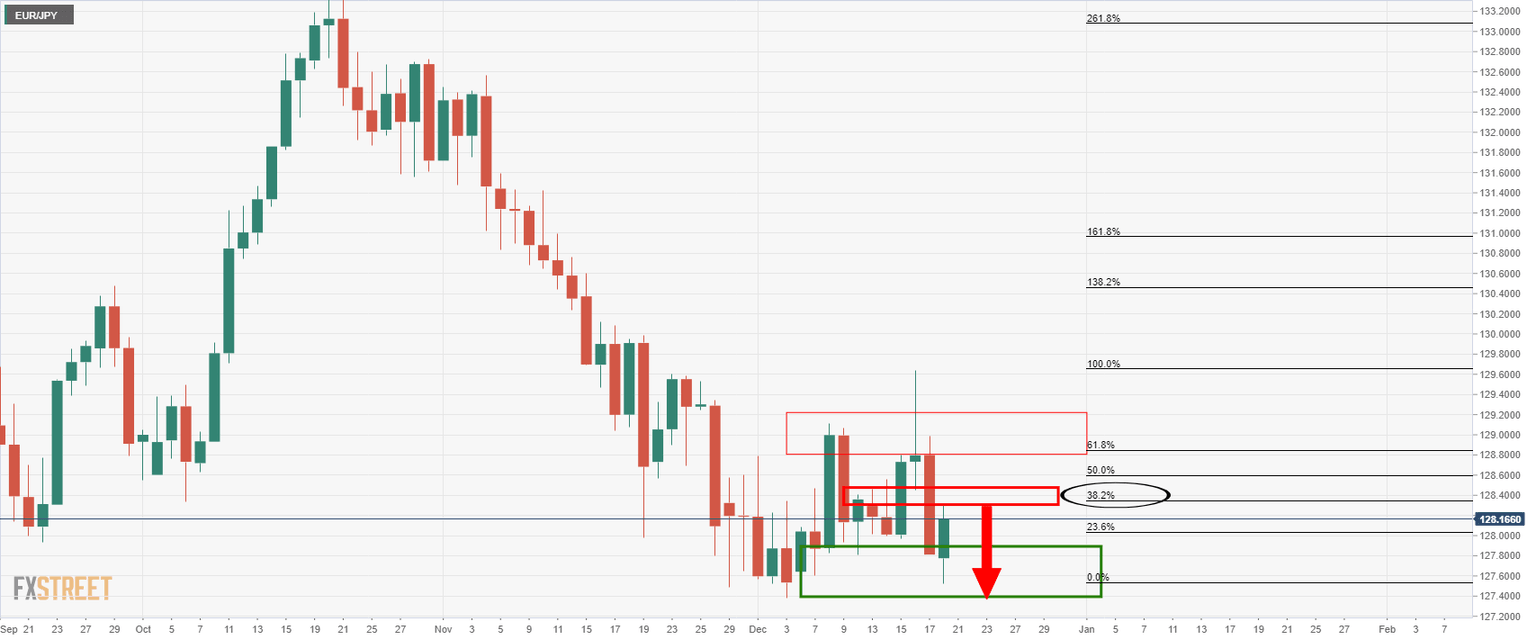 EUR/JPY Price Analysis: Bears are moving in, eye a break of 128.10
