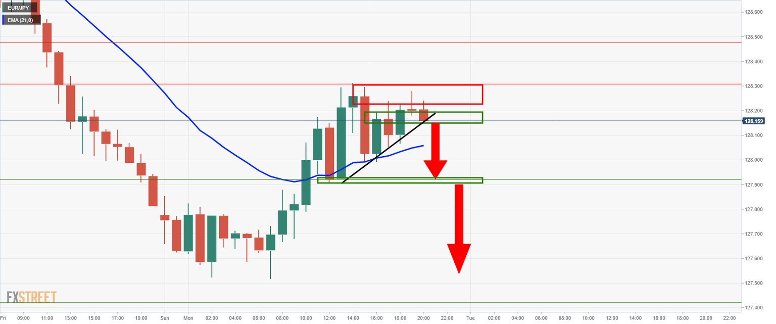 - EUR/JPY is at risk of a downside correction should 128.10 give way to bearish pressures.