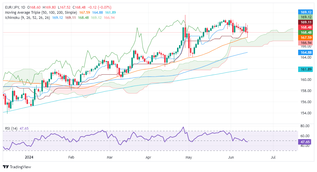 - EUR/JPY trades at 168.43, marking the second consecutive day of losses due to political uncertainty in France.