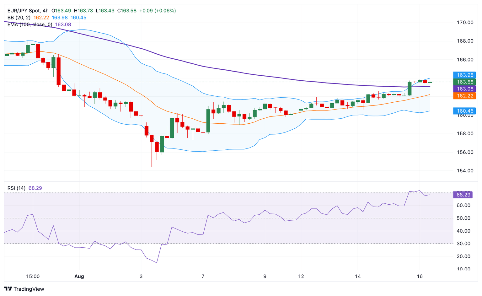 The potential upside barrier for EUR/JPY emerges at the 164.00 psychological mark. A sustained break above this level keeps an eye out for a continuation of the climb back to the 164.89, a low of July 25. Extended gains will see a rally to 166.56, a high of July 31.