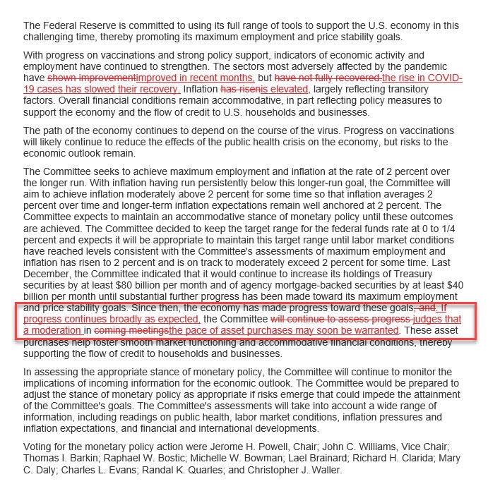 EUR/USD has moved violently between a low of 1.1705 and 1.1750 so far within seconds of the release of the statement that gives rise to an imminent taper announcement.