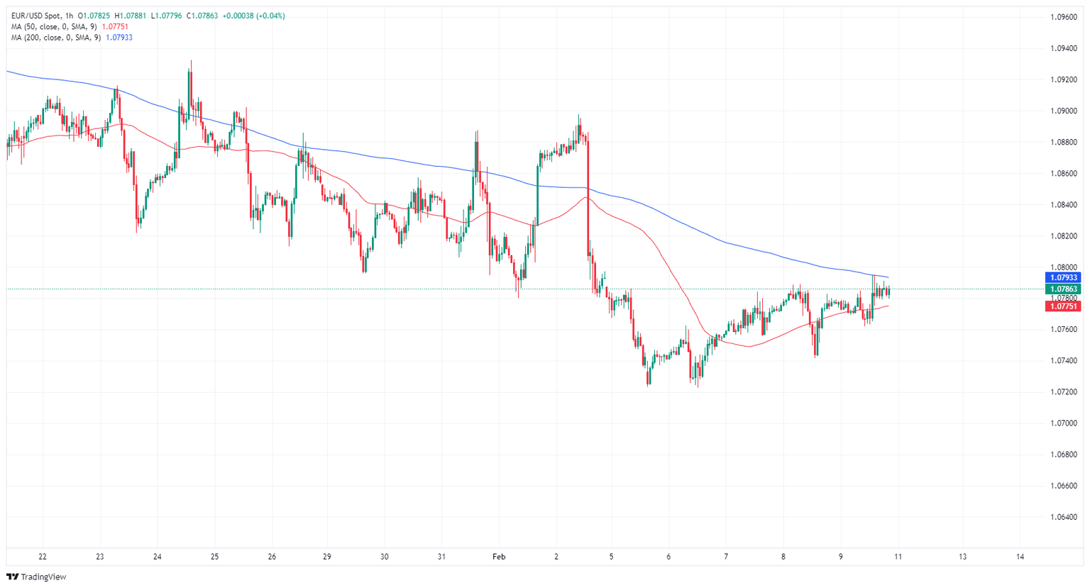 The EUR/USD remains pinned on the south side of the 200-hour Simple Moving Average (SMA) just beneath 1.0800. Although the pair continues to recover into the upside from the early week’s bottom near 1.0725, topside momentum remains capped, with longer-term technical patterns remaining decidedly bearish.