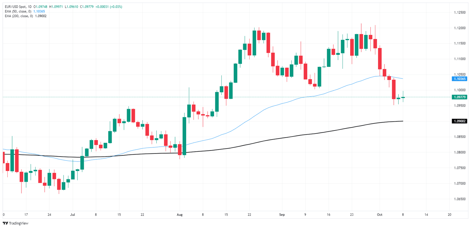 EUR/USD held steady on Tuesday, failing to recapture the 1.1000 handle but arresting Fiber’s recent backslide from the 1.1200 region. The Euro has shed two and a third of a percent against the US Dollar since reaching a one-year peak in late September, tumbling back into the 1.0950 region as markets bid the Greenback higher across the board.