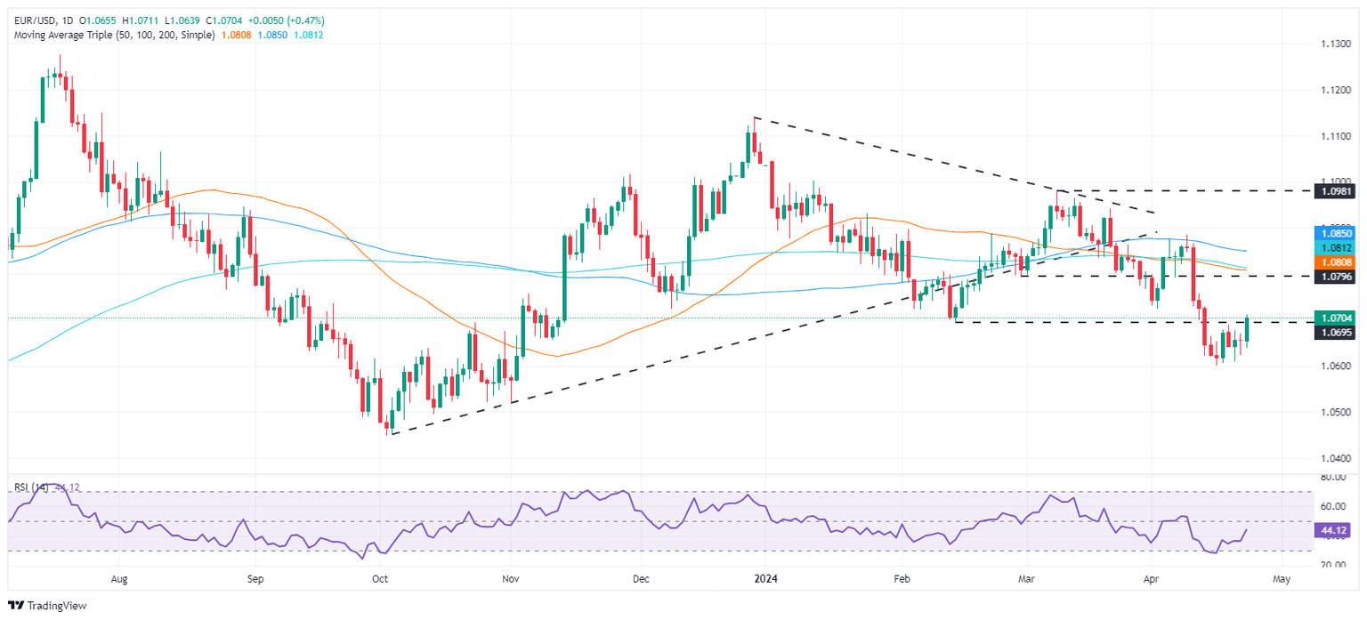 From a technical standpoint, EUR/USD traders, despite reclaiming the 1.0700 figure, further downside is seen. If buyers achieve a daily close above the latter, that could pave the way to aim toward 1.0800, capped by the confluence of the 50 and 200-day moving averages (DMAs) at 1.0806/11. Otherwise, if the major prints a close beneath 1.0700, look for a retracement to 1.0600.