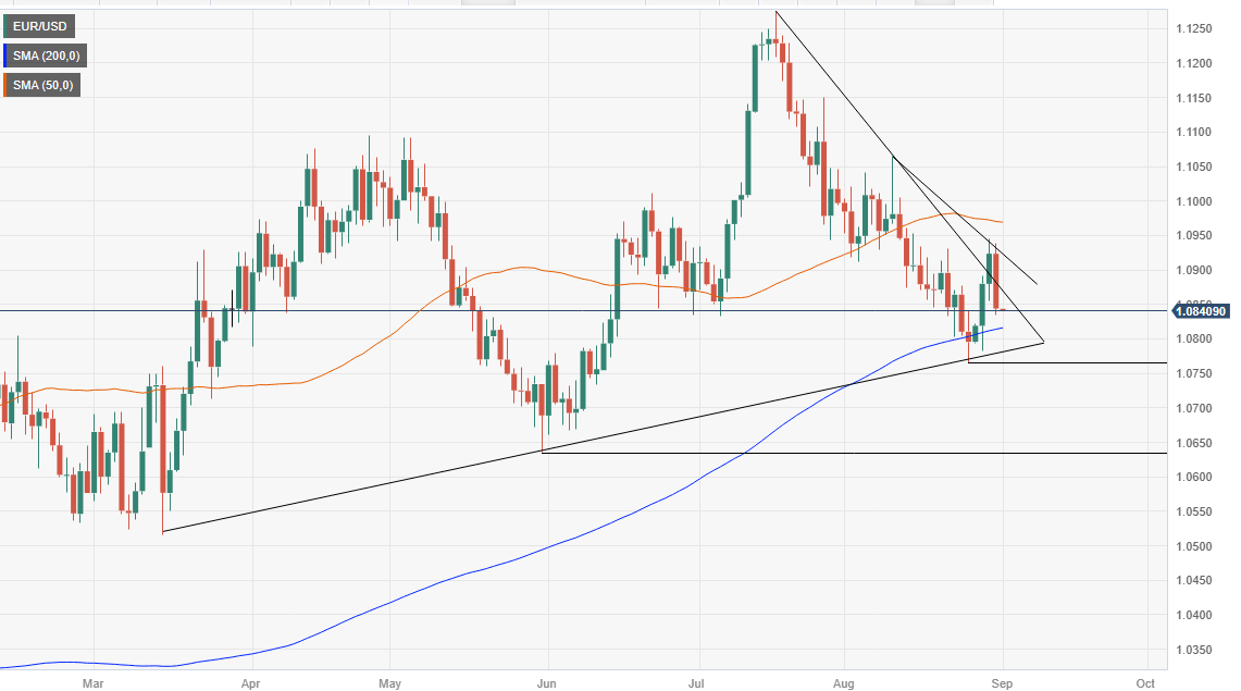 The Euro (EUR) reversed Wednesday’s gains vs. the US Dollar (USD), as the currency pair tanked, despite investors trimming the chances for a US Federal Reserve rate hike in September on a session that witnessed global bond yields falling. Hence, the EUR/USD is trading at 1.0843 after reaching a daily high of 1.0939, down 0.735.